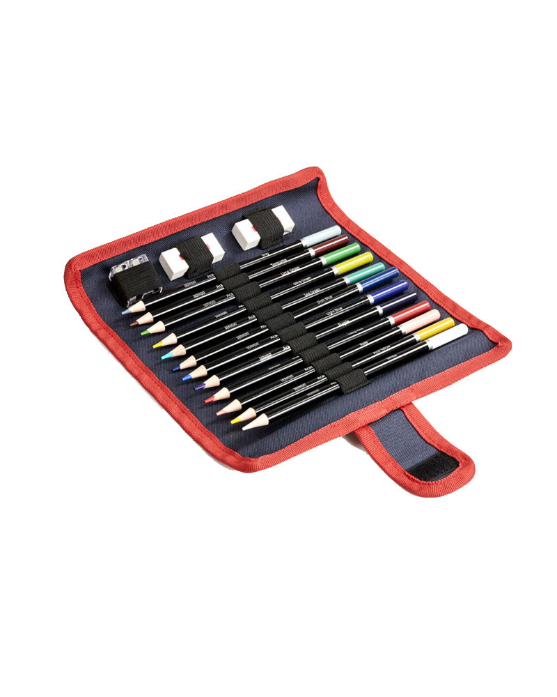 Nel kit hai tutto quello di cui hai bisogno per colorare, temperare e cancellare quando ce n’è bisogno. Le matite non sono acquerellabili.