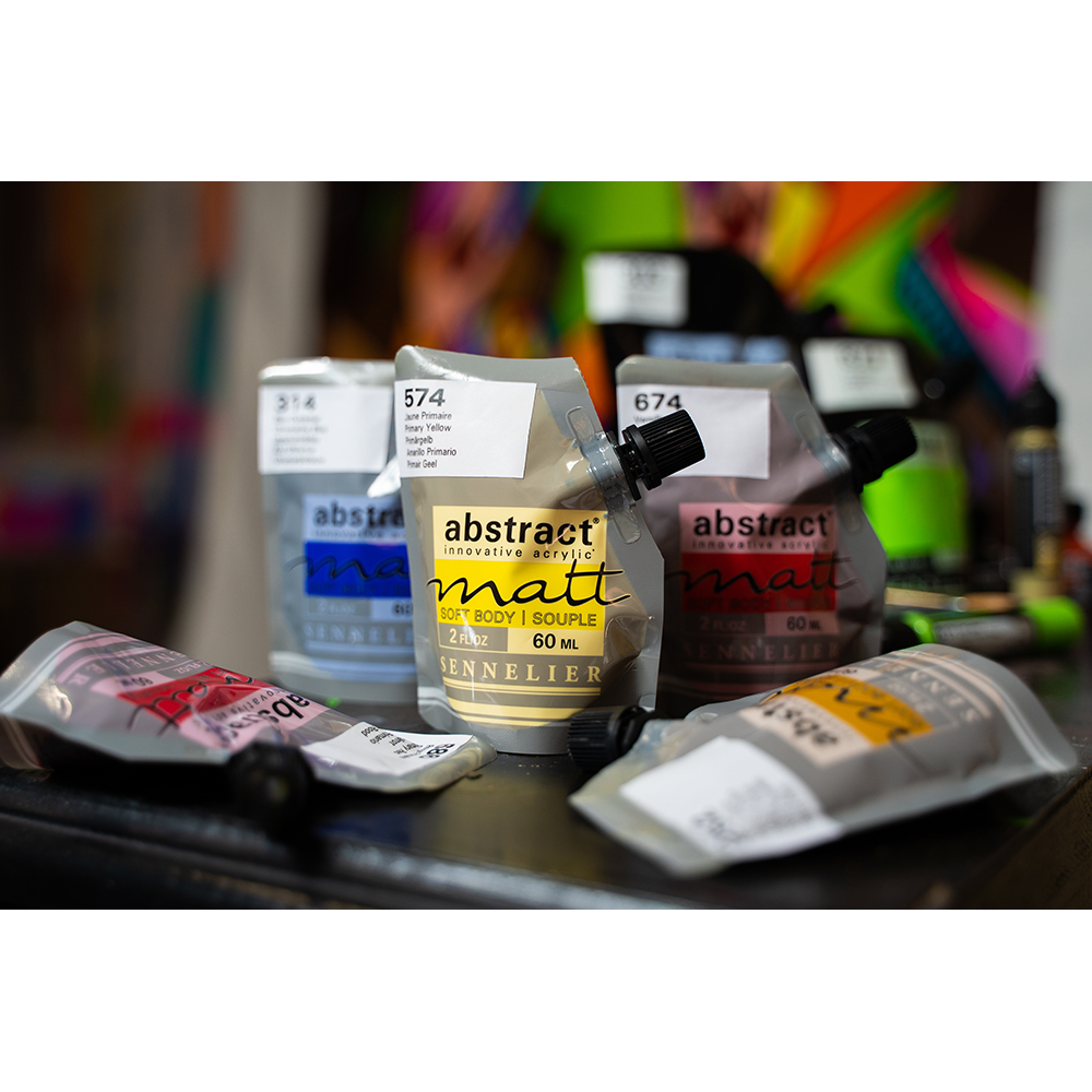L’assortimento di colori acrilici Sennelier Abstract Matt offre i consueti colori di alta qualità Abstract, dall’effetto finale vellutato e opaco una volta asciutto. Abstract Matt ha la consistenza di un colore Soft Body, una finitura ultra opaca ed è adatto all’utilizzo su molteplici superfici.