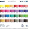 La gamma è composta da 24 colori privi di cadmio e trasparenti, di cui 13 con tonalità a pigmento singolo, disponibili in un pratico flacone contagocce di plastica da 30 ml con una pallina per ravvivare il colore.