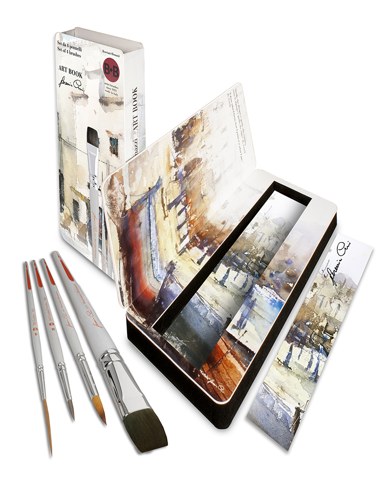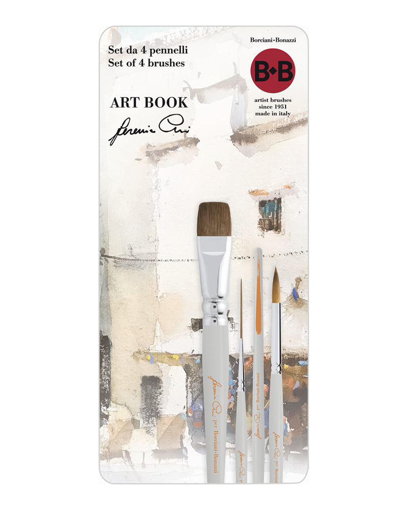 Dalla collaborazione con l’artista Geremia Cerri nasce un kit di pennelli sintetici essenziali, funzionali versatili ed estremamente rispondenti al gesto dell’artista.