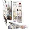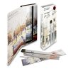 Il Kit è composto da un cofanetto porta pennelli riutilizzabile dalle sembianze di libro, interamente graficizzato con dipinti dell’artista, completo di folder illustrativo.