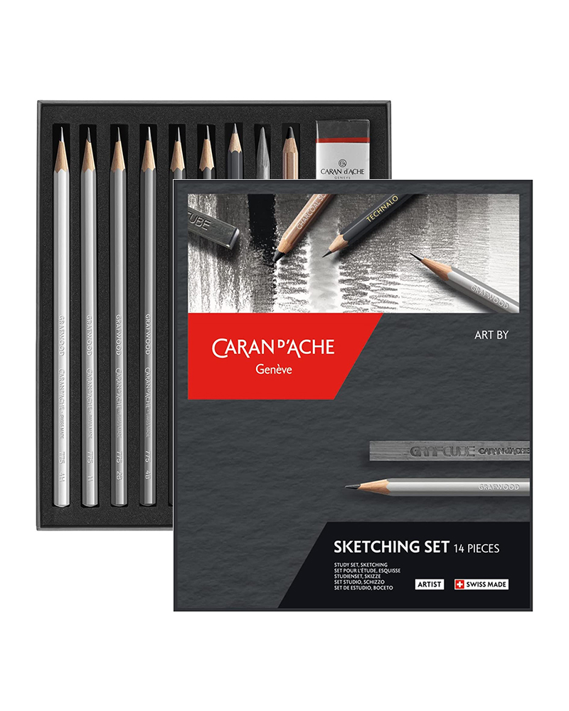 L’Art by Caran D’Ache Sketching è un set da disegno di alta qualità : comprende prodotti artistici complementari che forniscono gli strumenti ideali per schizzi, disegni e illustrazioni dettagliate, grazie ai quali otterrai ogni possibile sfumatura di grigio e nero nel disegno.