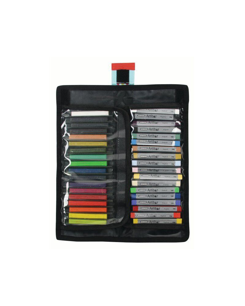 - Astuccio in tela nera con scomparti sicuri e pulibili per riporre i pastelli.