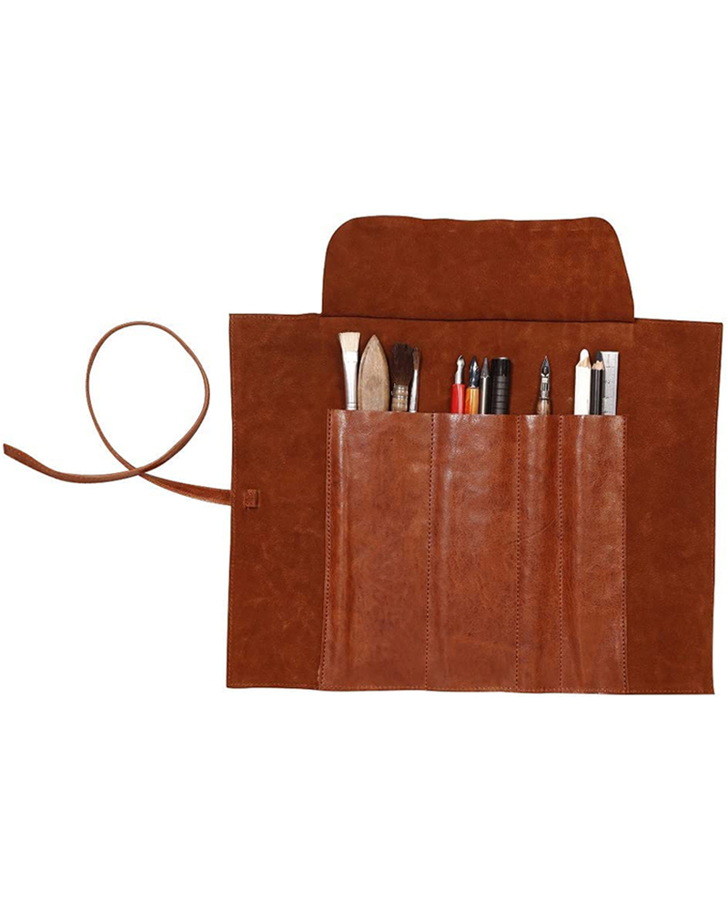 Un magnifico Astuccio in pelle color Cognac della collezione limitata Flying Spirit. Sviluppato appositamente per le esigenze degli artisti che vogliono portare con sé i propri strumenti, pennelli e matite ovunque.