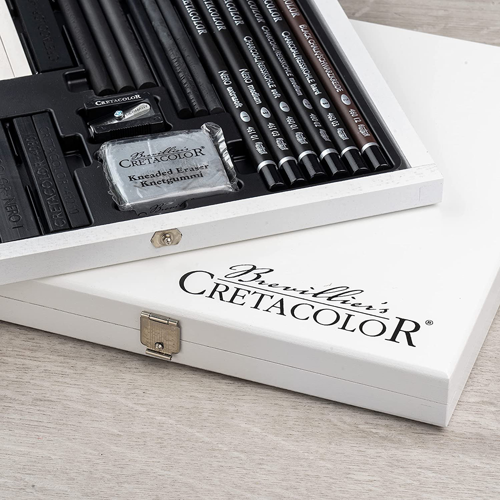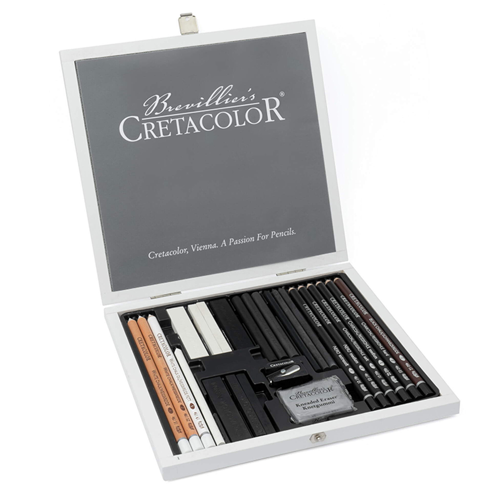 Il set da 25 pezzi per disegni e schizzi comprende i più importanti prodotti e accessori in bianco e nero. Disponibile in un’esclusiva scatola di legno bianca.
