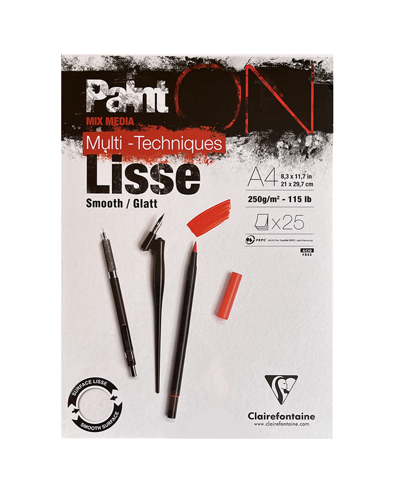 PaintON quindi è la gamma multi-tecnica per eccellenza! E’ il perfetto compromesso tra tecniche a secco ed umide. Grazie alla sua grammatura elevata, questo prodotto di qualità, ottimo rapporto qualità prezzo, resiste ai graffi e permette la realizzazione di strati e tratti sovrapposti.