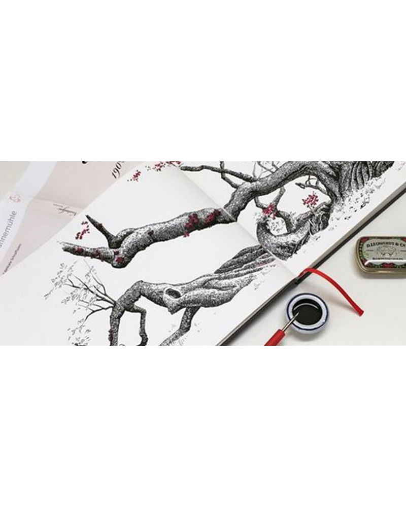 La pesante carta bianca naturale è solida e flessibile. La grana fine della carta fa scivolare la penna sulla superficie praticamente da sola. Il controllo della penna chiaramente definito e i tratteggi delicati consentono ogni tipo di lavoro, dallo schizzo architettonico al disegno veloce e dai colori vivaci.