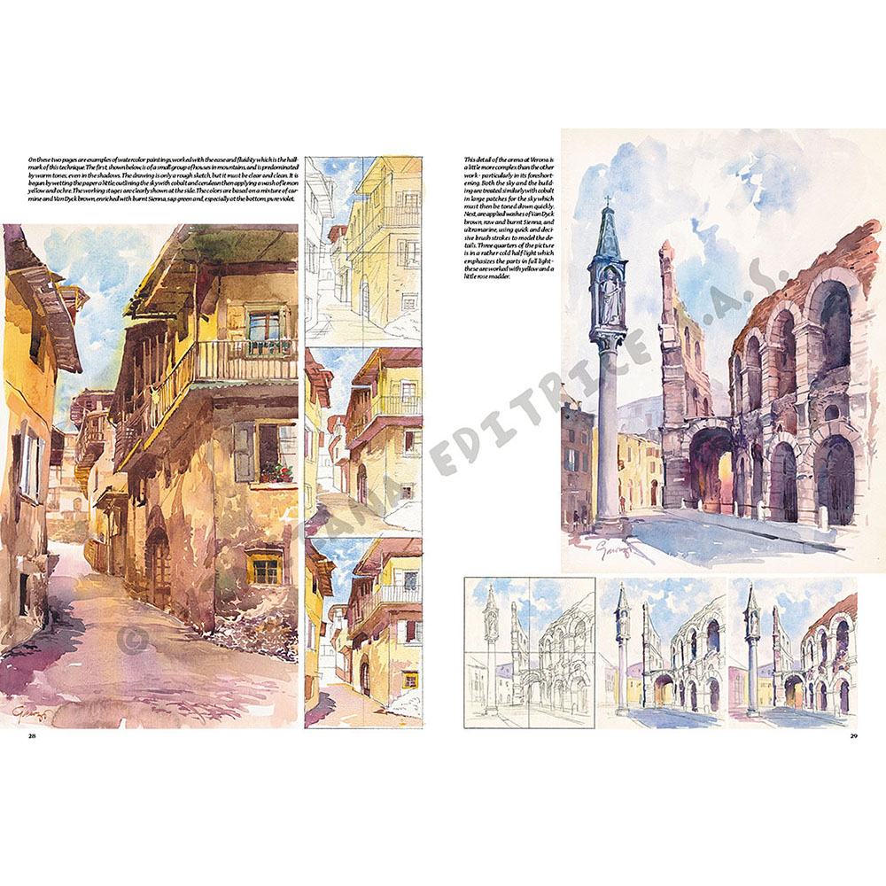 PAESAGGI Studiata e realizzata per essere una guida indispensabile per i principianti e un valido supporto per i professionisti, la Collana Leonardo si distingue per la chiarezza delle spiegazioni, la comprensibilità del linguaggio e, soprattutto, la scelta intelligente e mirata delle immagini. All’interno della collana sono affrontate in modo chiaro e completo le tecniche del disegno e della pittura, a partire dai fondamentali principi grafici fino alle più svariate tecniche pittoriche, e viene presentata una gamma veramente ricca di soggetti. I primi cinque titoli della collana, per la loro semplicità e completezza, sono stati adottati in numerose scuole ad indirizzo artistico in tutto il mondo. I 48 volumi che compongono attualmente la Collana Leonardo, presi singolarmente, hanno carattere monografico, ma, nel loro insieme, sviluppano un discorso completo ed esauriente in cui ogni argomento riguardante disegno e pittura trova la sua giusta collocazione.
