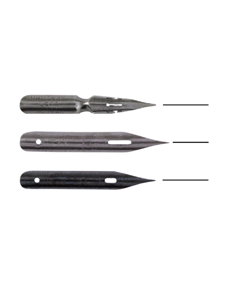 Il Pennino da disegno Brause è disponibile di tre diverse varianti: una sorprendentemente flessibile che permette di eseguire un piccolissimo ricciolo, una di una morbidezza media, l’altro duro e molto fine.