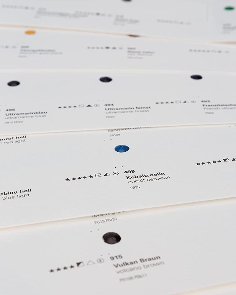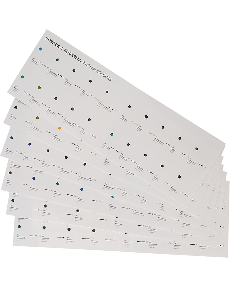 Con questa carta a pois puoi provare facilmente le 24 tonalità scure degli acquerelli Schmincke Horadam e scoprire i tuoi colori preferiti.