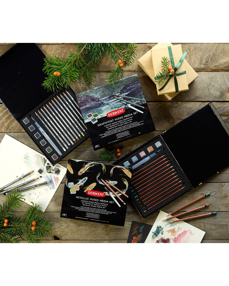 La vernice e le matite Derwent Graphitint contengono una miscela unica di grafite e colore per creare una tavolozza di toni caldi e freddi con una lucentezza grafite. Le fini particelle di grafite si depositano nella grana della carta per creare una miriade di effetti.