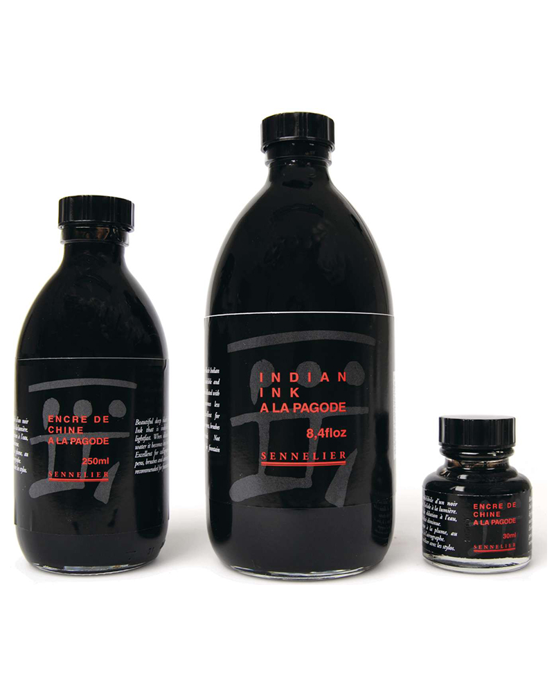 L’inchiostro a china in flacone “à la Pagode” è di un nero profondo e indelebile. Con la sua eccezionale densità e l’ottima resistenza alla luce, viene utilizzato dai disegnatori e dai pittori.