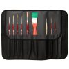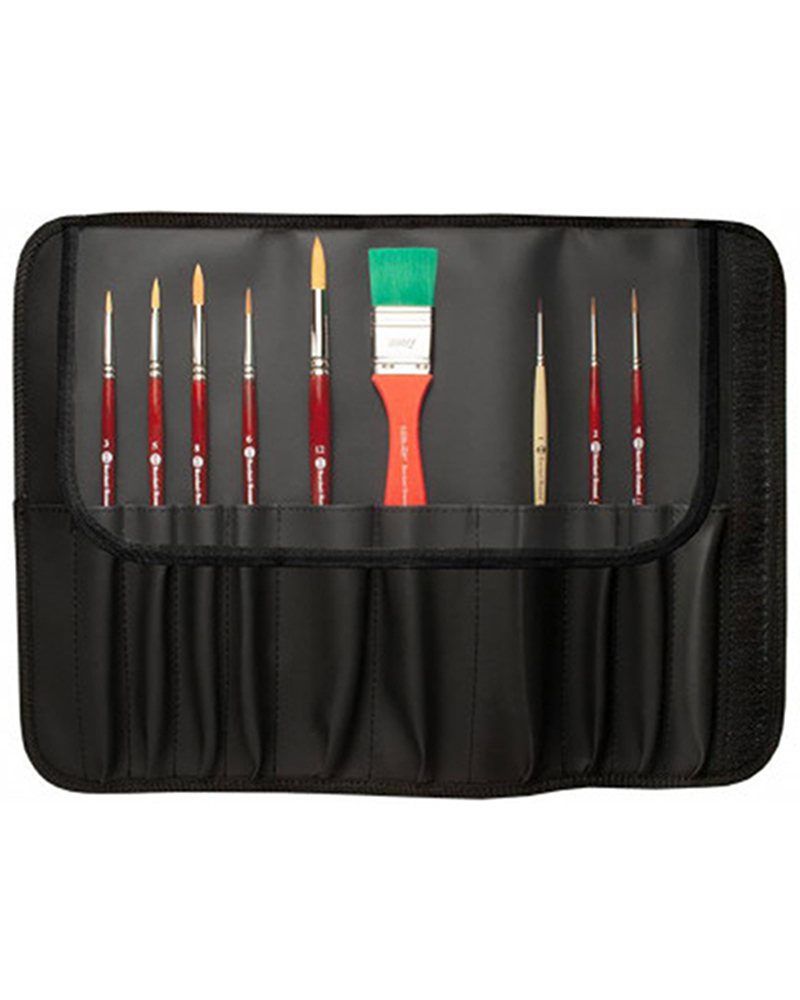 La selezione di 9 prodotti unisce vari pennelli provenienti dalla serie 85 in sintetico oro fine, una fibra particolarmente morbida ed elastica, studiata per quegli utilizzi ove la leggerezza del colore e la morbidezza del tocco pittorico sono fondamentali. Alcuni pennelli scelti in martora naturale dalle serie 105 e 111 inclusi nel kit connotano la selezione per un uso avanzato, per chi è già in grado di destreggiarsi. La pennellessa della Serie Italia 1951, la preferita dall’artista, unitamente alla misura più grande della Serie 605 Top Graphic IL PRECISO completano il kit.