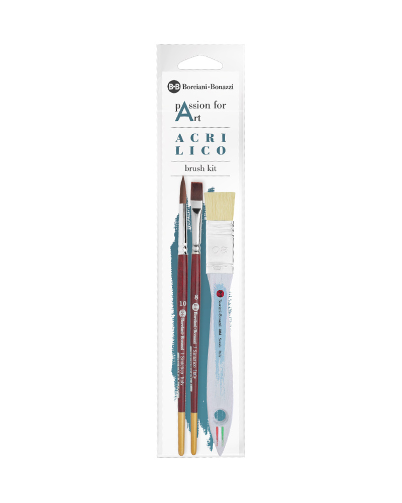 Contiene una selezione di pennelli in filato sintetico elastico e morbido, che riesca a muovere il colore senza lasciare tracce nella materia pittorica dell’acrilico: per chi vuole iniziare e muoversi tra pittura e decorazione.