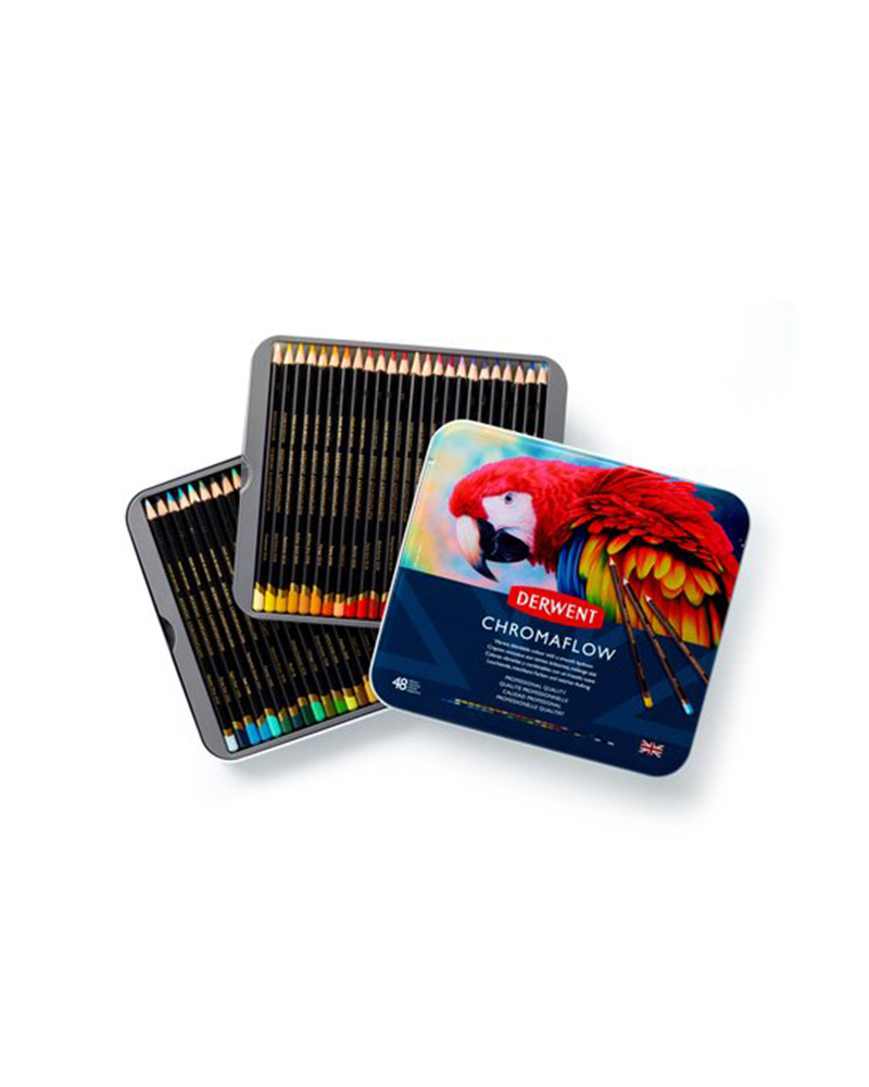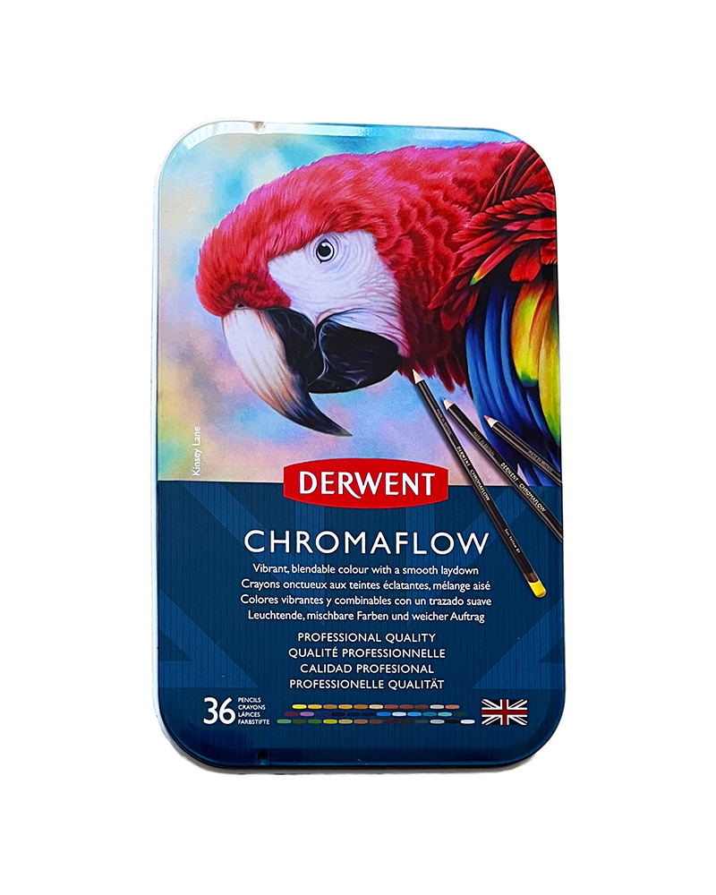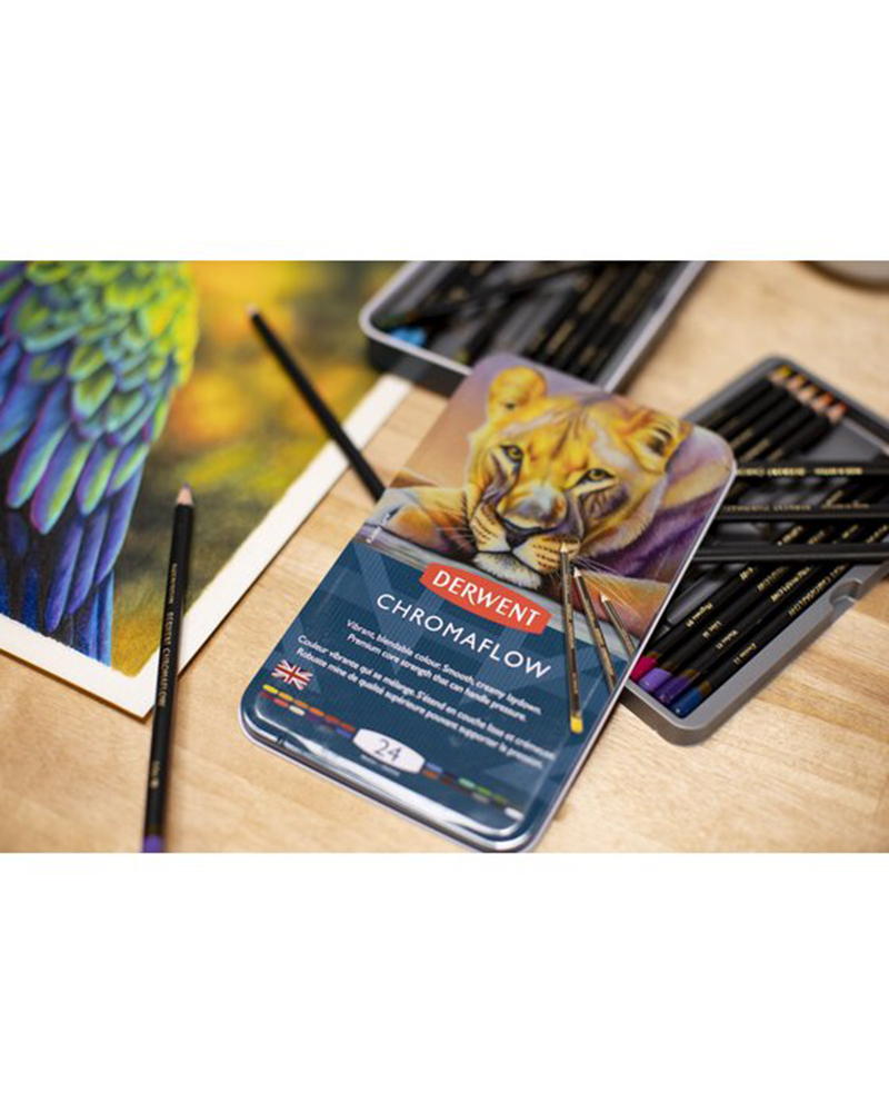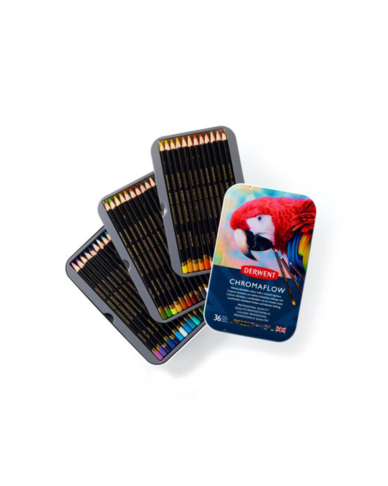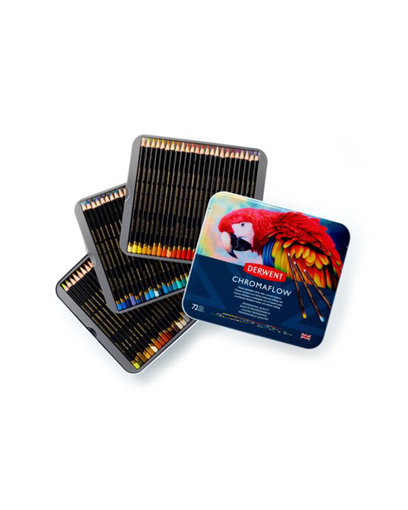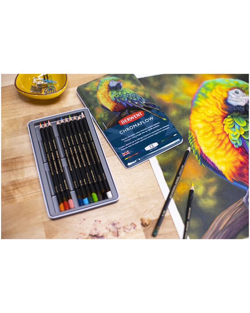 Le matite colorate CHROMAFLOW di Derwent sono matite a base di cera di qualità professionale per artisti, formulate con pigmenti ricchi per offrire colori vivaci, sfumabili con una stesura uniforme e che risaltano anche su carta scura.