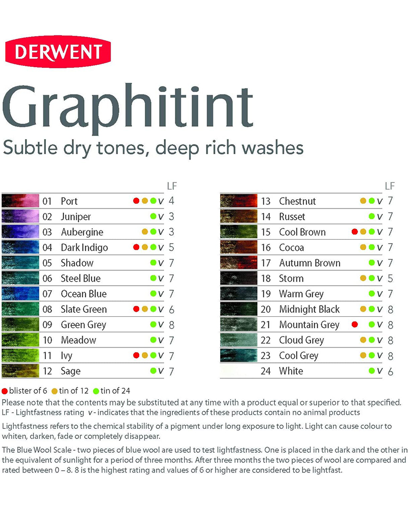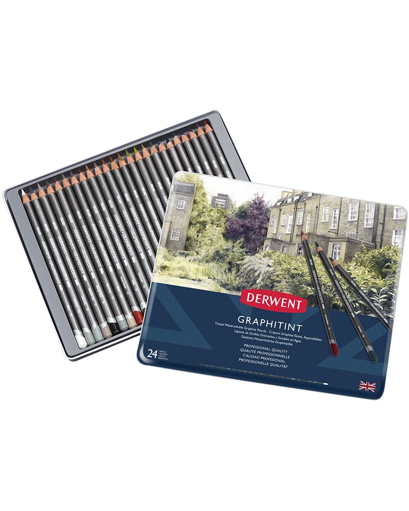Serie unica con matite di grafite colorate solubili in acqua. GRAPHITINT è una vera matita di grafite con pigmenti di colore. Adatta per disegni di paesaggi, ritratti e studi su animali.