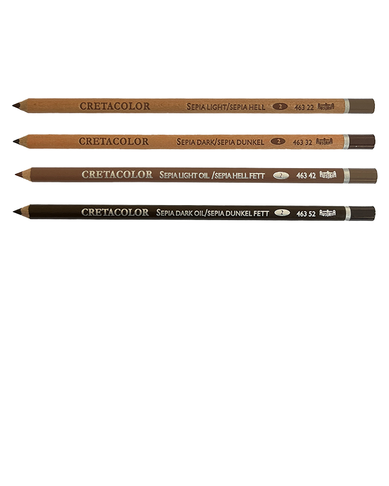 Le matite da schizzo color Seppia di Cretacolor sia chiaro che scuro sono ottime da combinare con pastelli e carboncini.