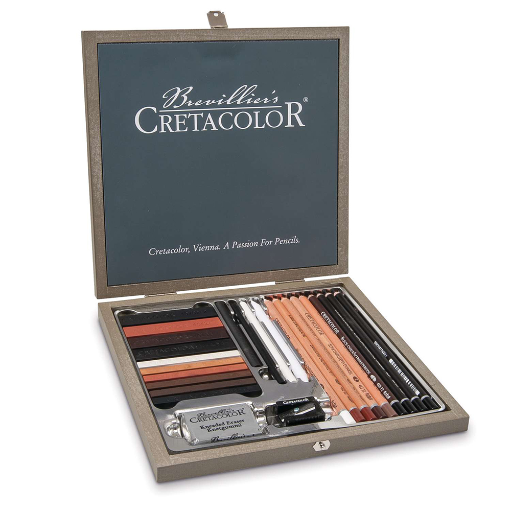 Questo set di Cretacolor “Passion Box” è composto da una selezione di 25 prodotti essenziali per disegnare, il tutto custodito in una elegante scatola di legno.