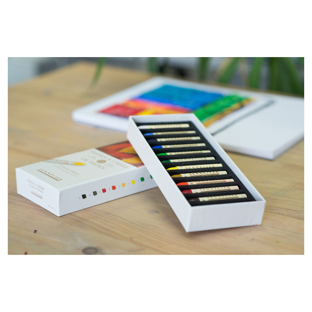 I pastelli ad olio Sennelier hanno un’eccezionale concentrazione di pigmento che conferisce loro grande potere colorante, coprente, grande vivacità dei toni e ottima resistenza alla luce (ad eccezione dei colori metallizzati e fluorescenti).