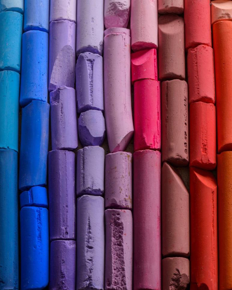 Morbido e vellutato, assemblato in bastoncini e realizzato a mano, il pastello secco non friabile ha un grande potere coprente.