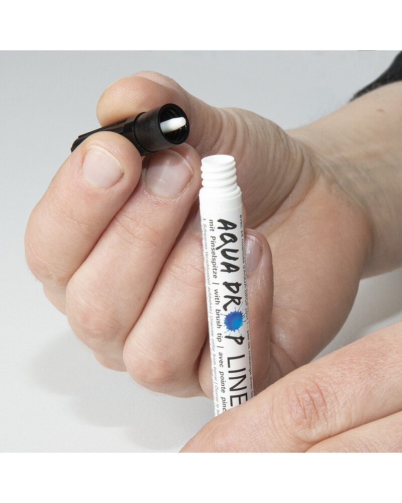 Lo strumento perfetto per gli acquerelli fluidi Schmincke Aqua Drop: questo liner è un pennarello vuoto dotato di una punta a pennello fine e maneggevole. Può essere facilmente riempito di colore direttamente con la pipetta del flacone di Aqua Drop per essere subito pronto all’uso.