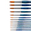Pennello tondo, sintetico Ambra. Ghiera in ottone nichelato. Manico corto di legno verniciato di azzurro.