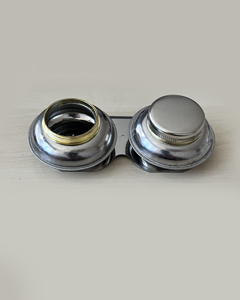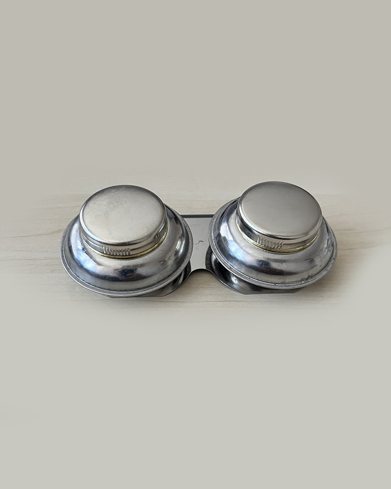 Scodellino doppio in acciaio inossidabile per tavolozza, con tappi a vite –Â Diametro 5,5 cm – TINTORETTO