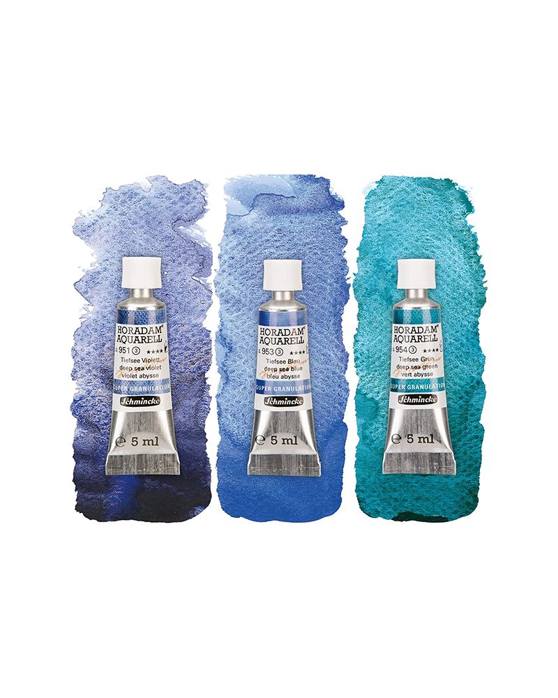 SET DI ACQUERELLI HORADAM SUPER GRANULATI 3×5 ML – “TRIO MARE PROFONDO”