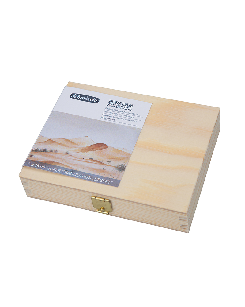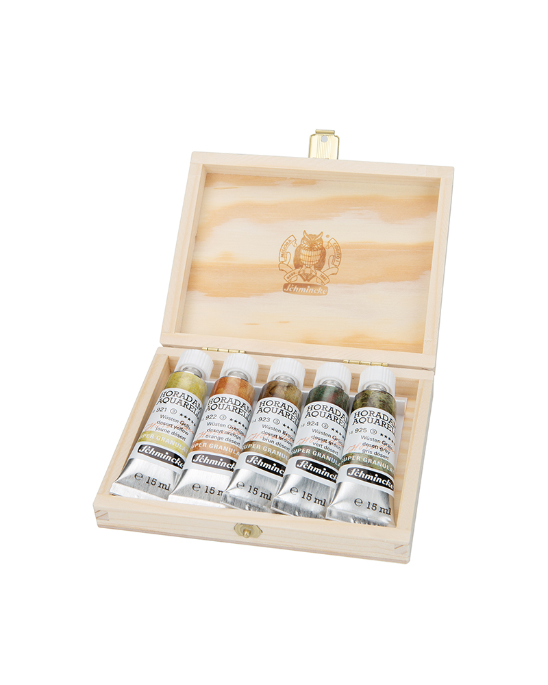 SET DI ACQUERELLI HORADAM SUPER GRANULATI 5 x 15 ML – ” DESERTO” – SCATOLA IN LEGNO –