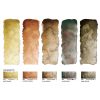 Le nuove tonalità sono formulate con i pigmenti di diverse gamme di colore, in modo che ulteriori cambiamenti di colore risultino dall’effetto di granulazione. Per esempio, la tonalità “Mare Profondo Indigo” è una combinazione di pigmenti viola e verdi, mentre “Ghiacciaio Marrone” contiene un pigmento marrone e uno verde. La formazione di questa nuova struttura naturale dei colori varia a seconda del fondo e della quantità d’acqua utilizzata. Più la carta è ruvida, più forte è l’effetto di granulazione.