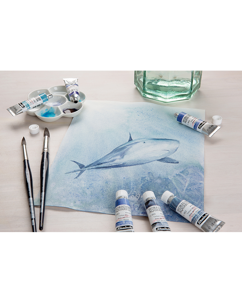 La nuova edizione speciale HORADAM AQUARELL “Colori Super Granulati” contiene un totale di 40 tonalità in tubi da 15 ml, divisi in 5 tonalità ciascuno nella serie “Mare profondo”, “Ghiacciaio”, “Galassia”, “Bosco”, “Tundra”, “Palude”, “Deserto”, “Vulcano” e l’ultima novità: il set “Urban”. Con questi insoliti colori ad acquerello, Schmincke espande le possibilità della pittura ad acquerello granulosa per includere sfumature insolite con un aspetto super granuloso. La combinazione di almeno 2 pigmenti granulati HORANAM intensifica l’effetto di granulazione, in cui i pigmenti sulla carta si uniscono in alcuni punti, per formare una “super granulazione”.