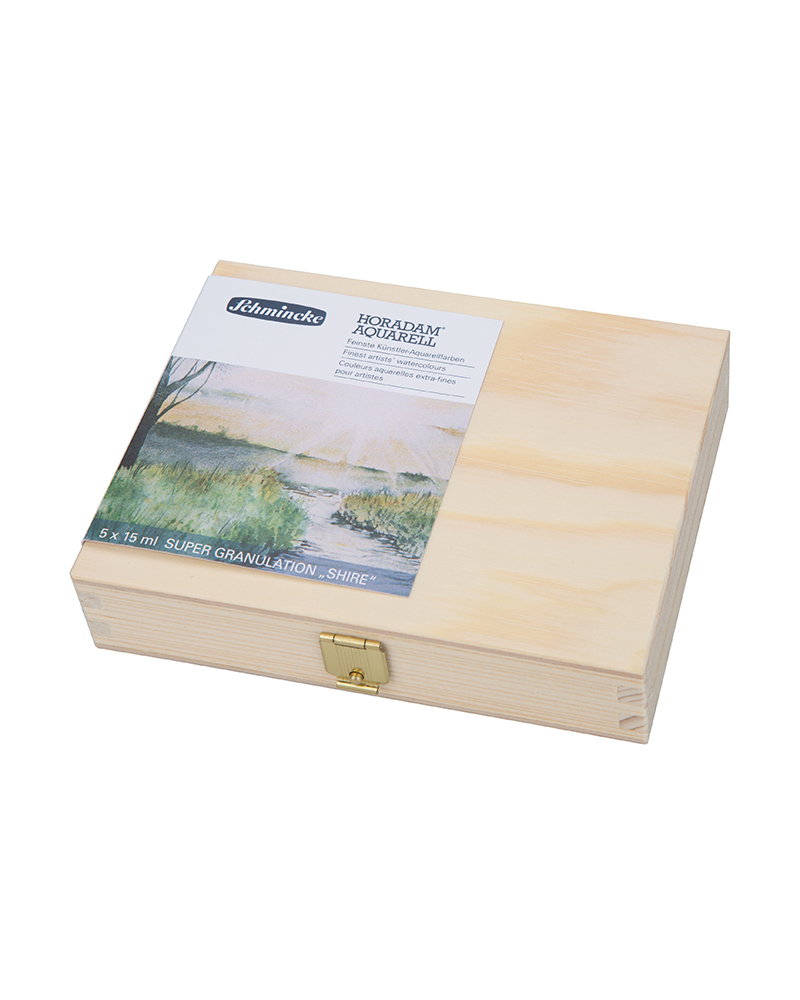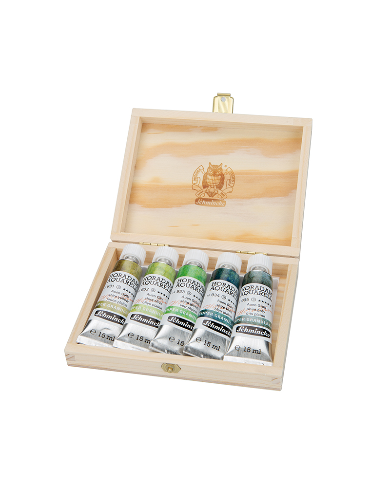 SET DI ACQUERELLI HORADAM SUPER GRANULATI 5 x 15 ML – ” PALUDE” – SCATOLA IN LEGNO –