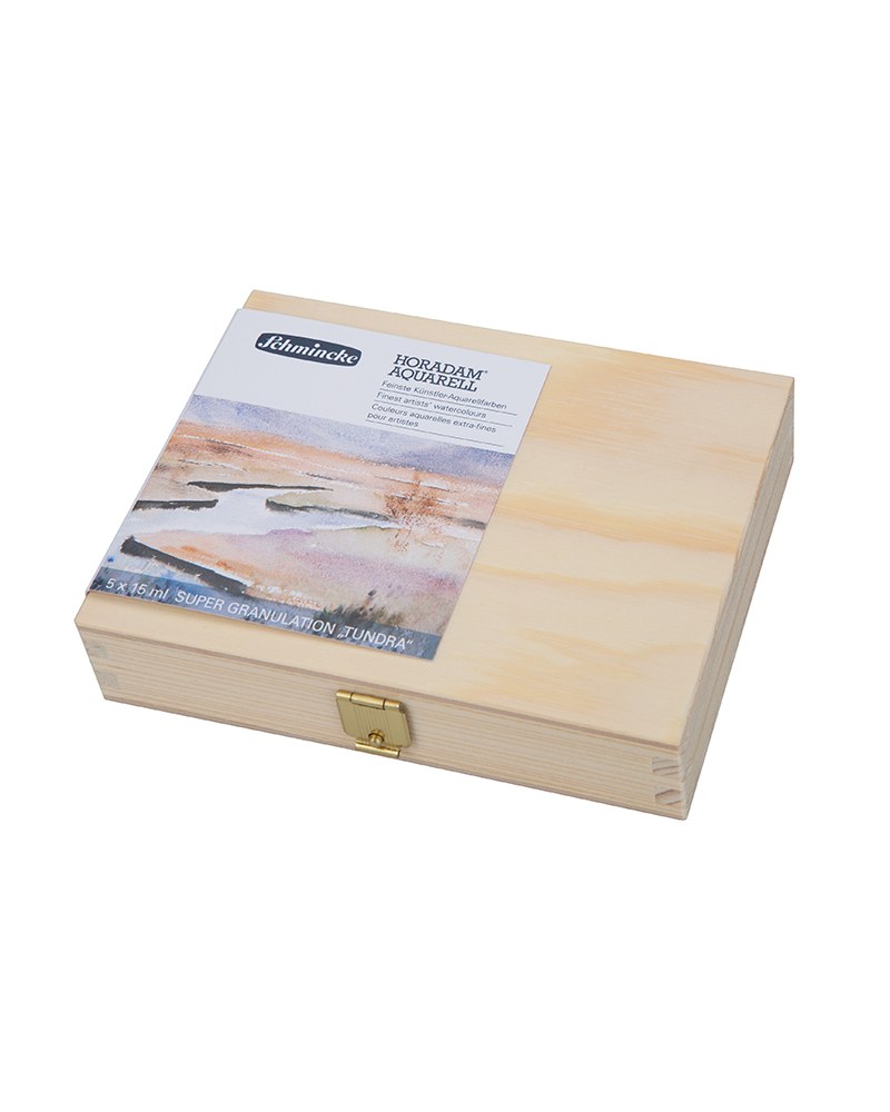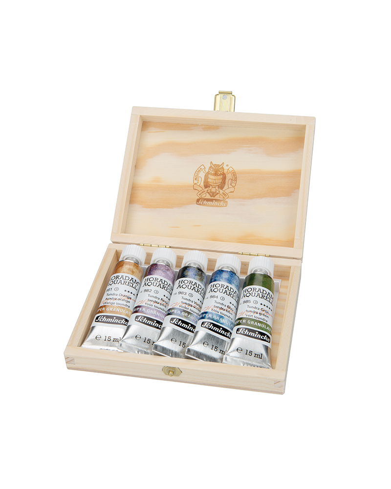 SET DI ACQUERELLI HORADAM SUPER GRANULATI 5 x 15 ML – ” TUNDRA” – SCATOLA IN LEGNO –