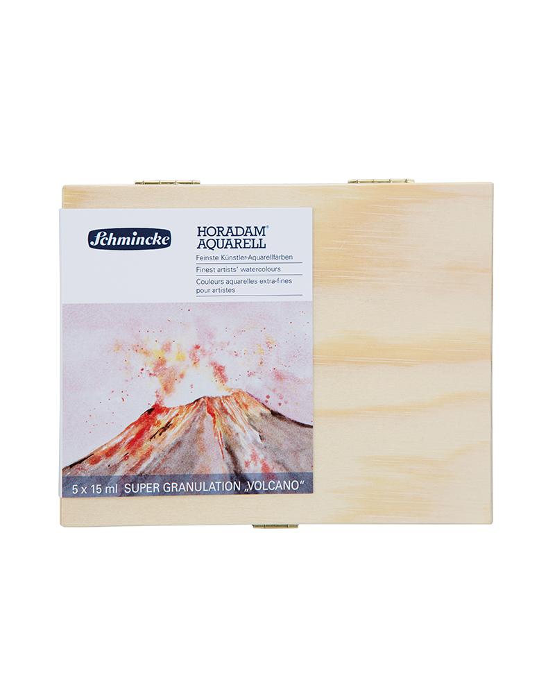 La nuova edizione speciale HORADAM AQUARELL “Colori Super Granulati” un totale di 40 tonalità in tubi da 15 ml, divisi in 5 tonalità ciascuno nella serie “Mare profondo”, “Ghiacciaio”, “Galassia”, “Bosco”, “Tundra”, “Palude”, “Deserto”, “Vulcano” e l’ultima novità: il set “Urban”. Con questi insoliti colori ad acquerello, Schmincke espande le possibilità della pittura ad acquerello granulosa per includere sfumature insolite con un aspetto super granuloso. La combinazione di almeno 2 pigmenti granulati HORANAM intensifica l’effetto di granulazione, in cui i pigmenti sulla carta si uniscono in alcuni punti, per formare una “super granulazione”.