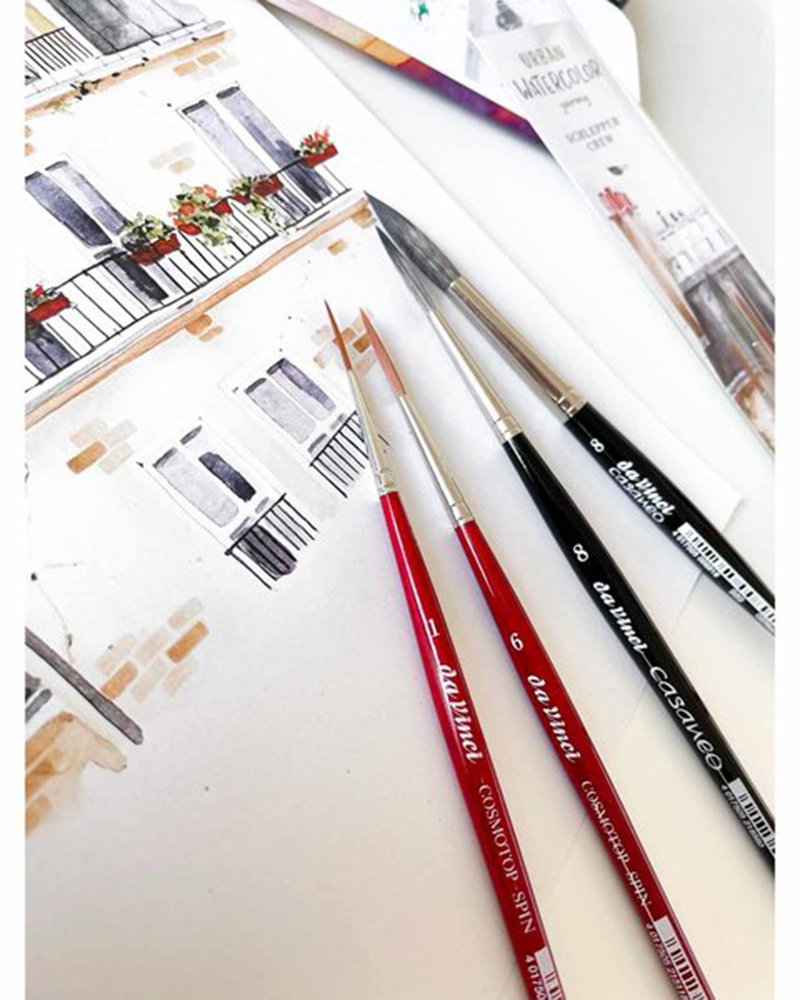 Per fantastici motivi ad acquerello urbani, i due illustratori e disegnatori di successo May & Berry consigliano questo set di pennelli che hanno creato.