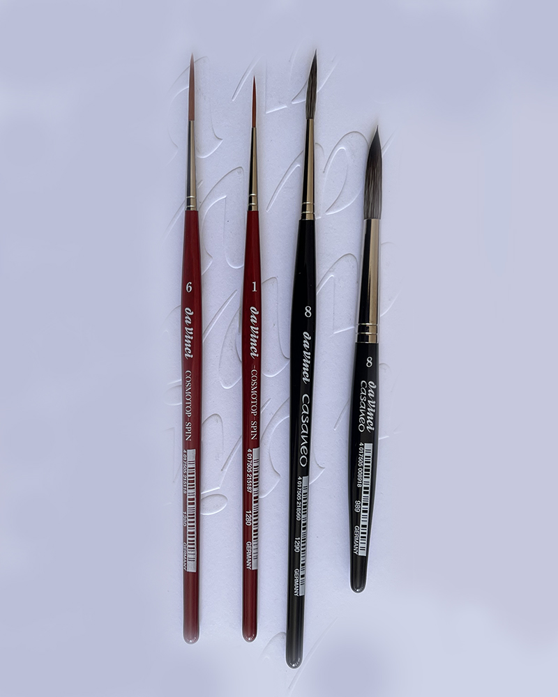 - Serie 1290 CASANEO (fibra sintetica extra morbida con eccezionale elasticità e altissima capacità di assorbimento del colore), tonda, misura 8;